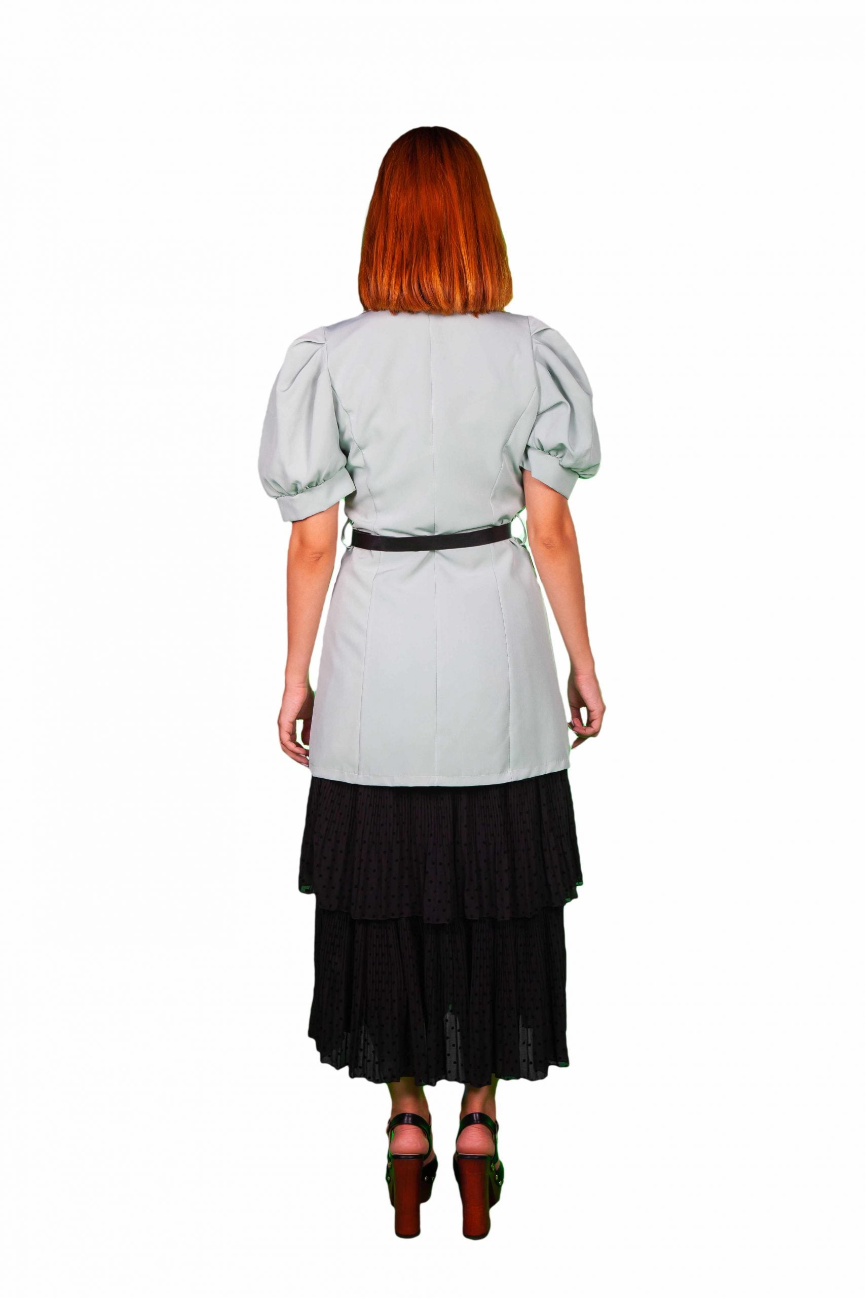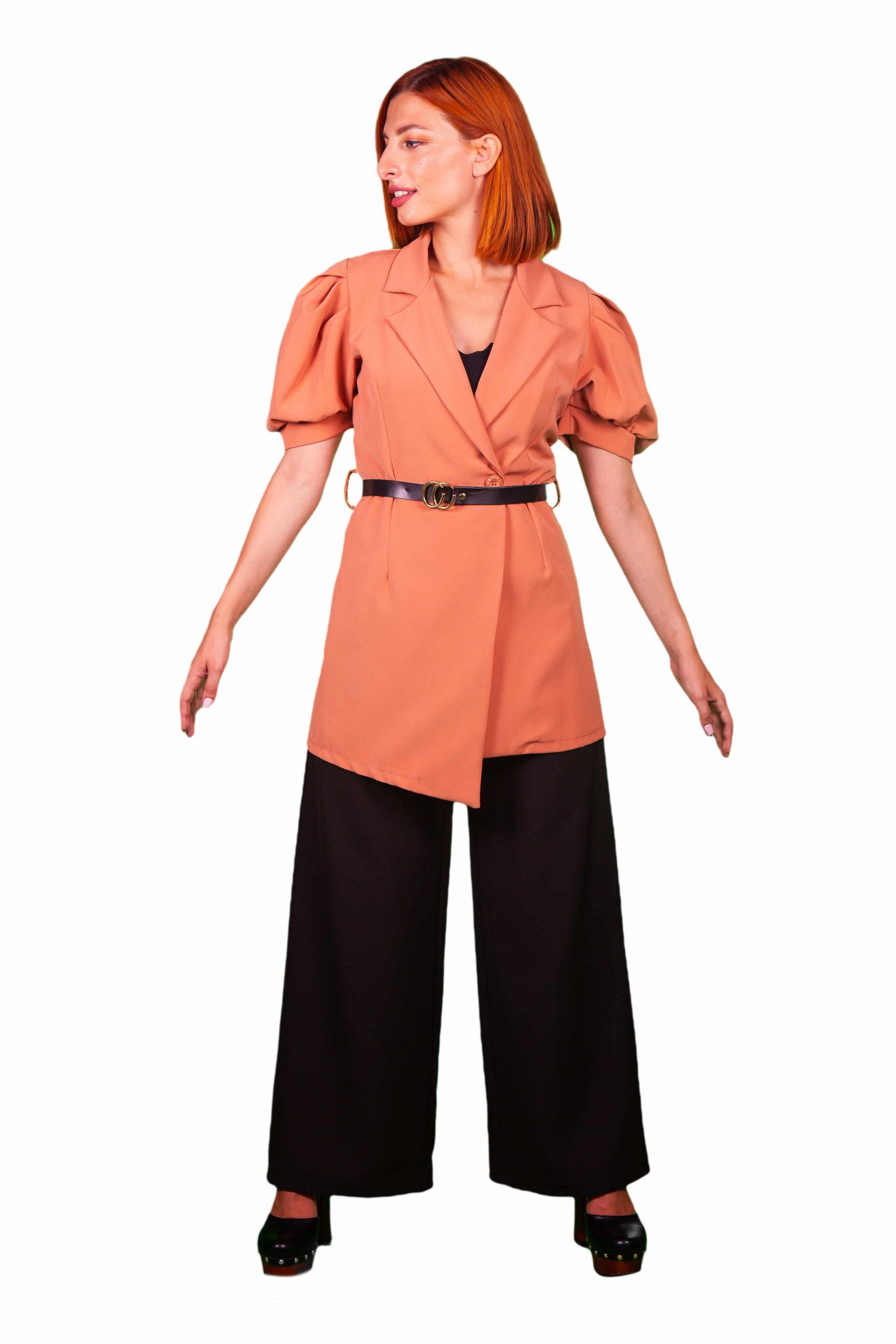 Κοντομανικο σακάκι με ασυμμετρίες και ζώνη.