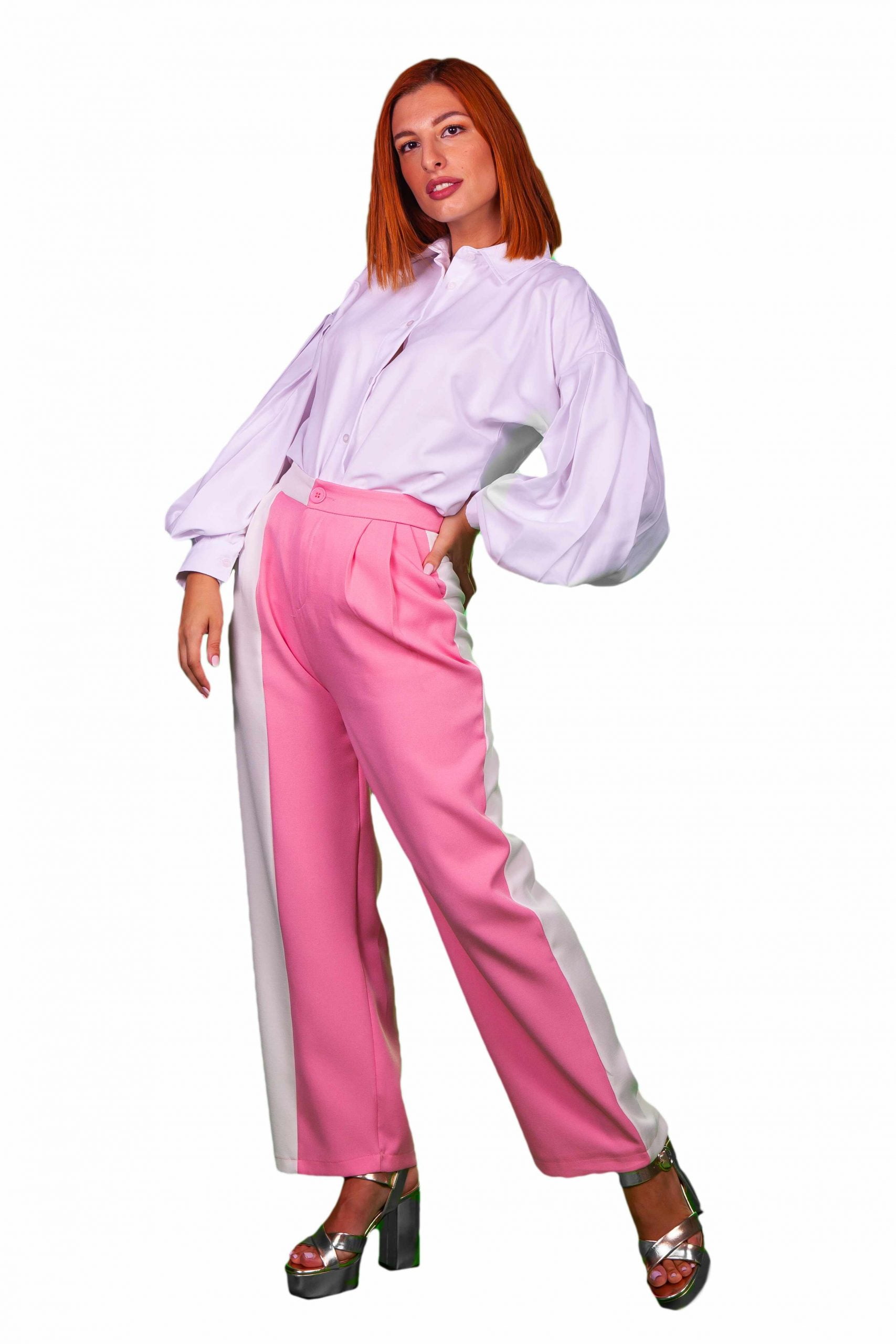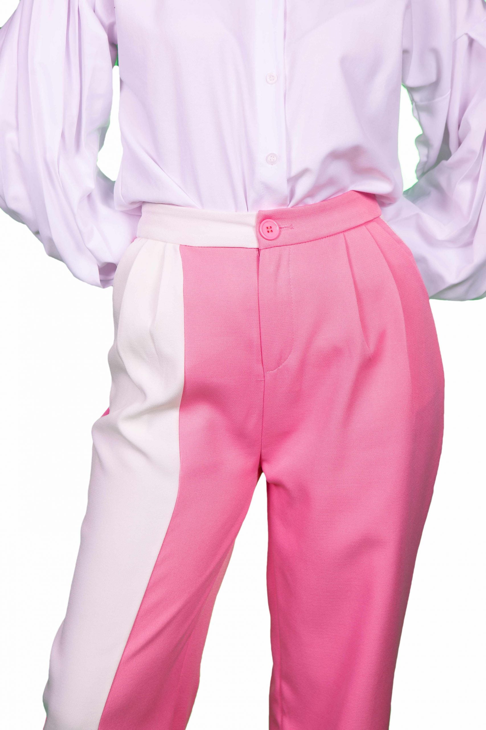 Ψηλόμεσο παντελόνι με τσάκιση και πιέτες με ιδιαίτερη διχρωμία.