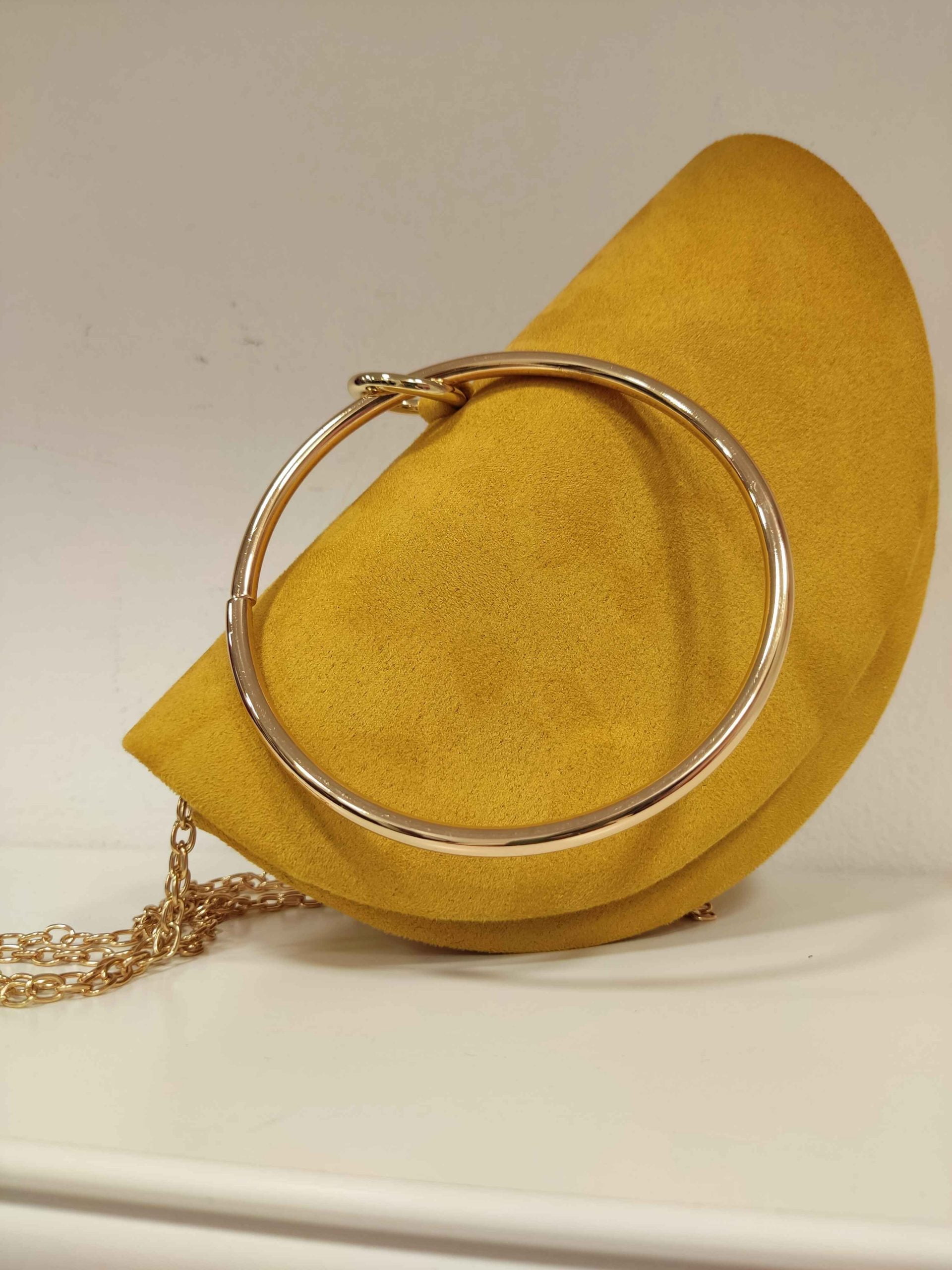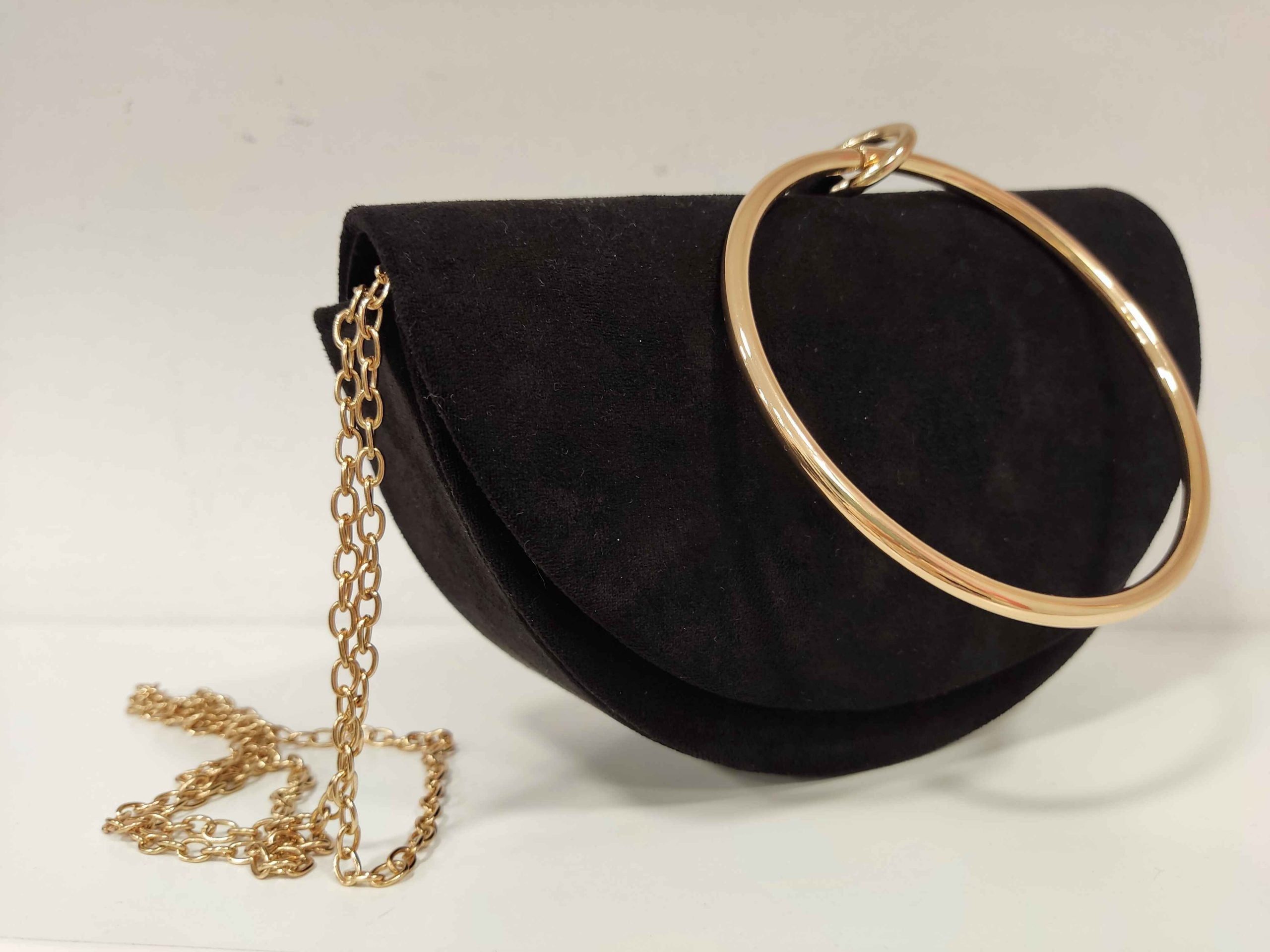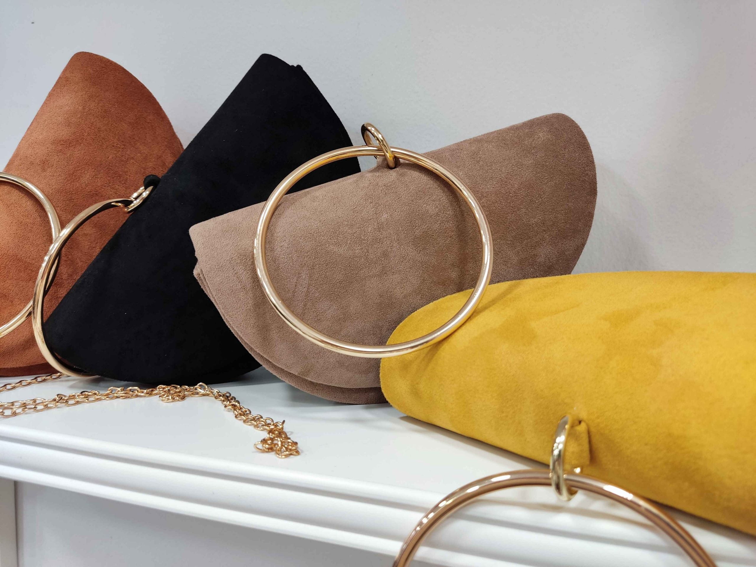 Ιδιαίτερο τσαντάκι από σουετίνη με μακριά αλυσίδα και μεταλλικό κρίκο