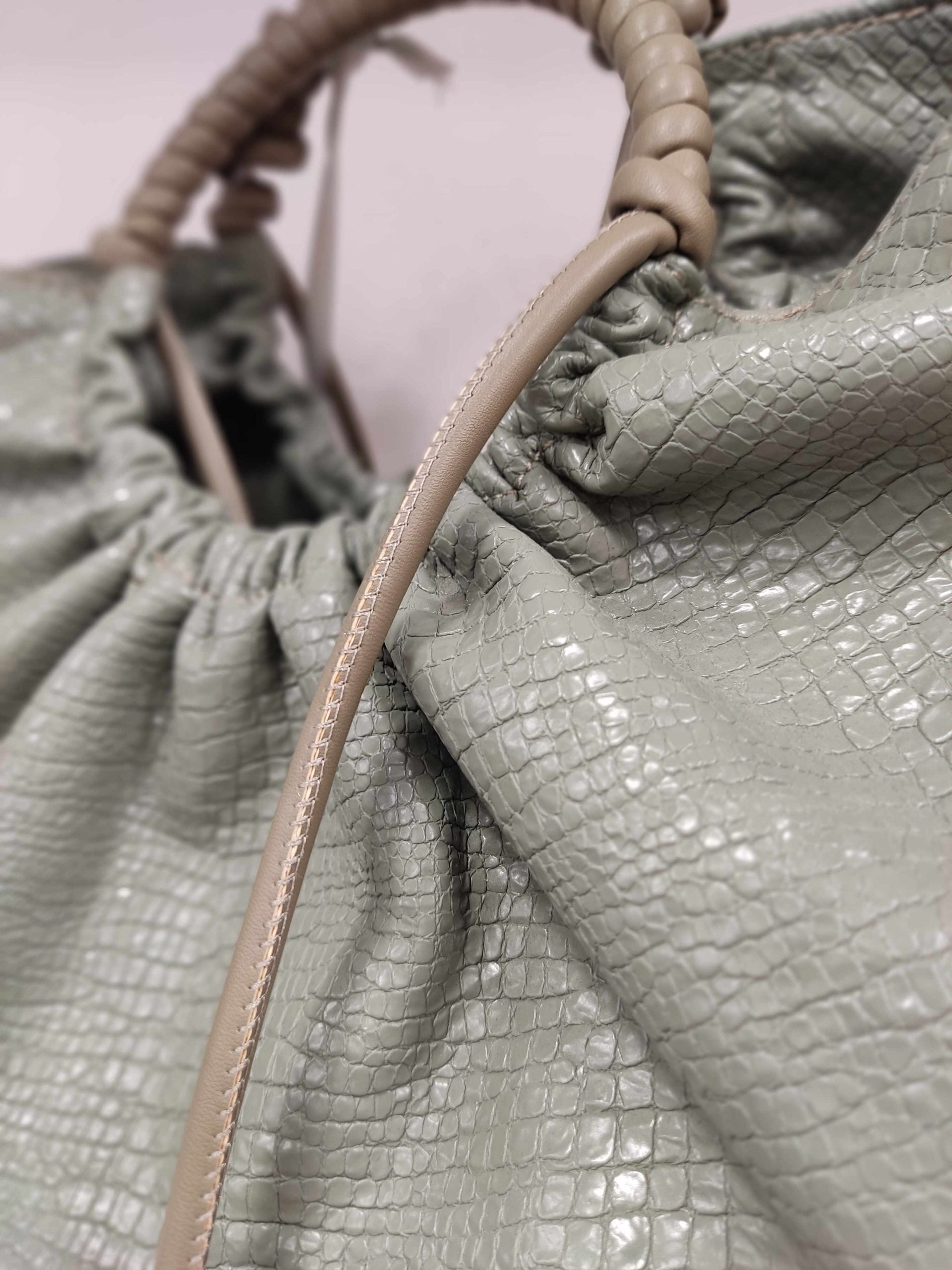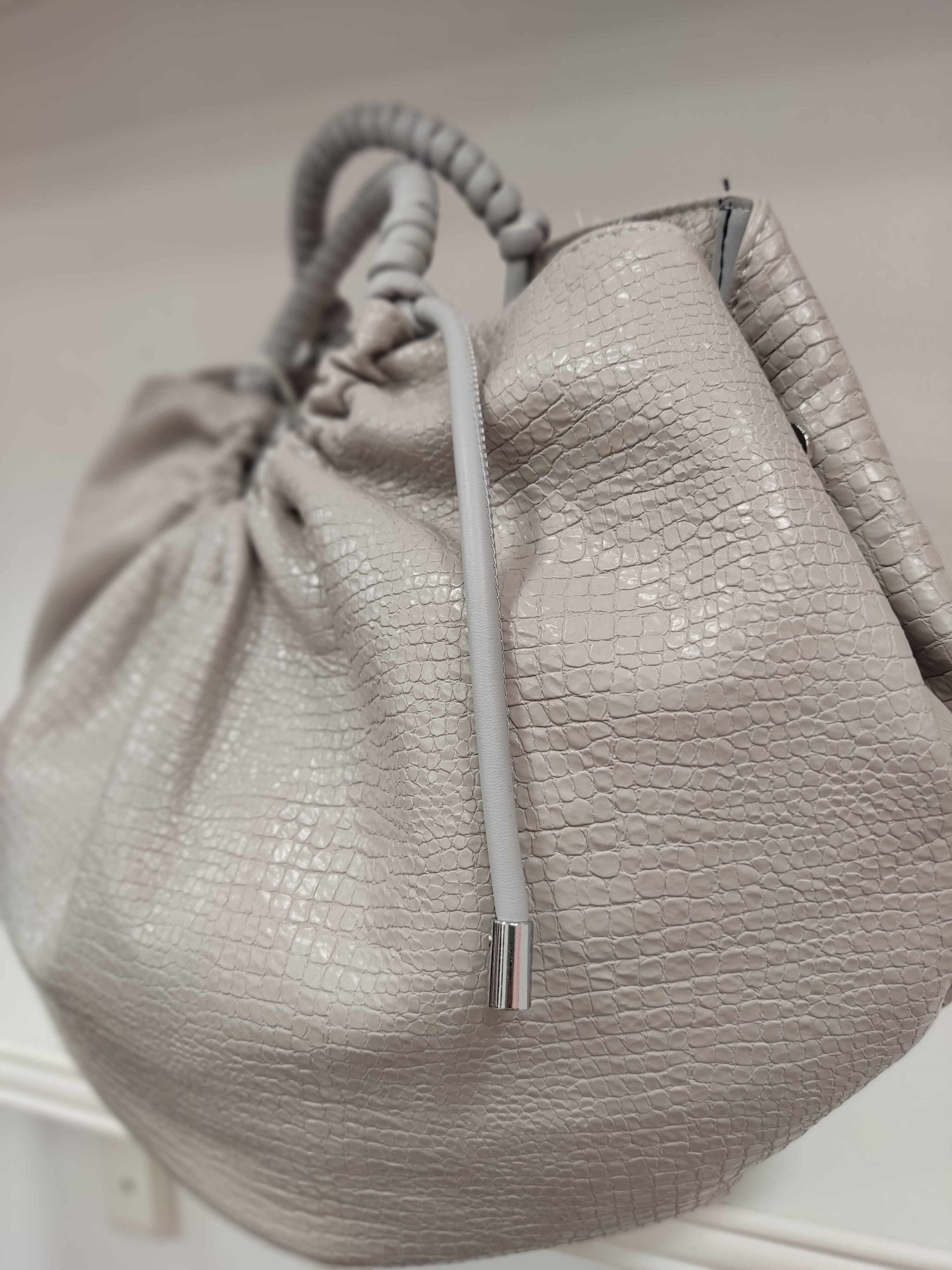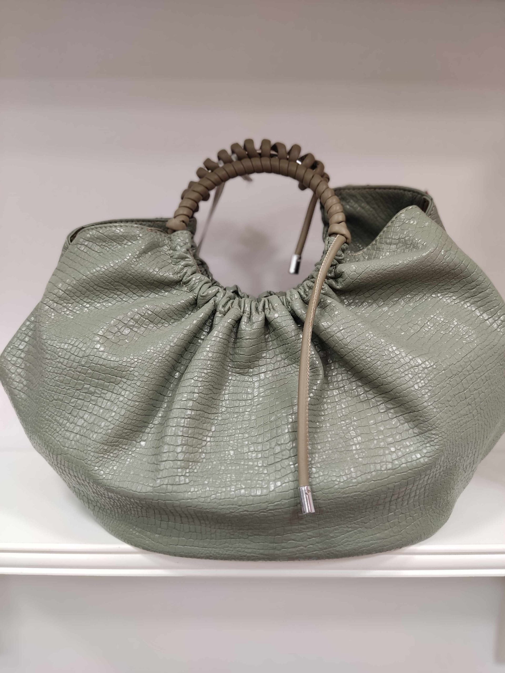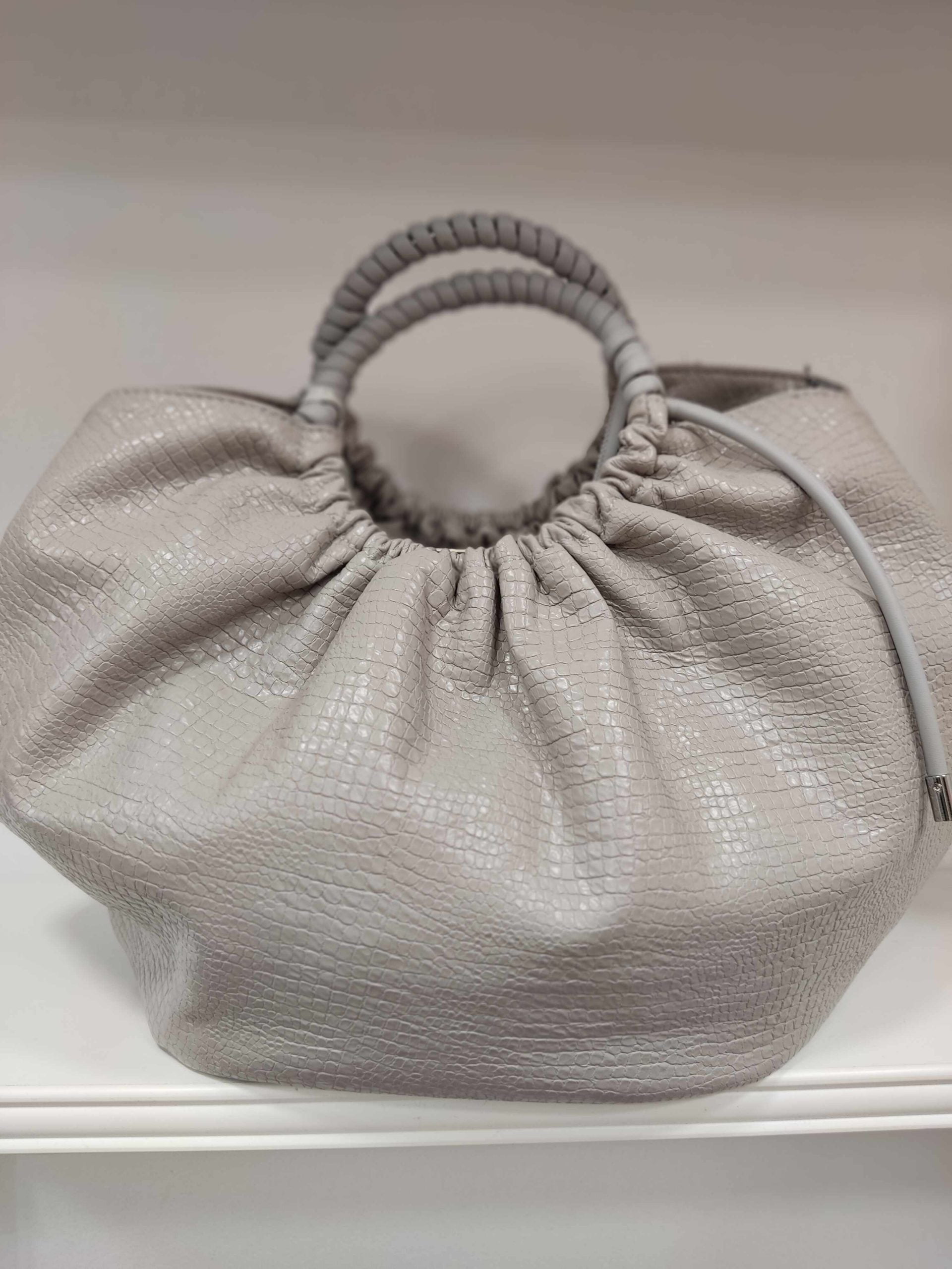 Τσάντα χειρός με ανάγλυφη όψη. Διαθέτει και έξτρα μακρύτερο λουράκι.