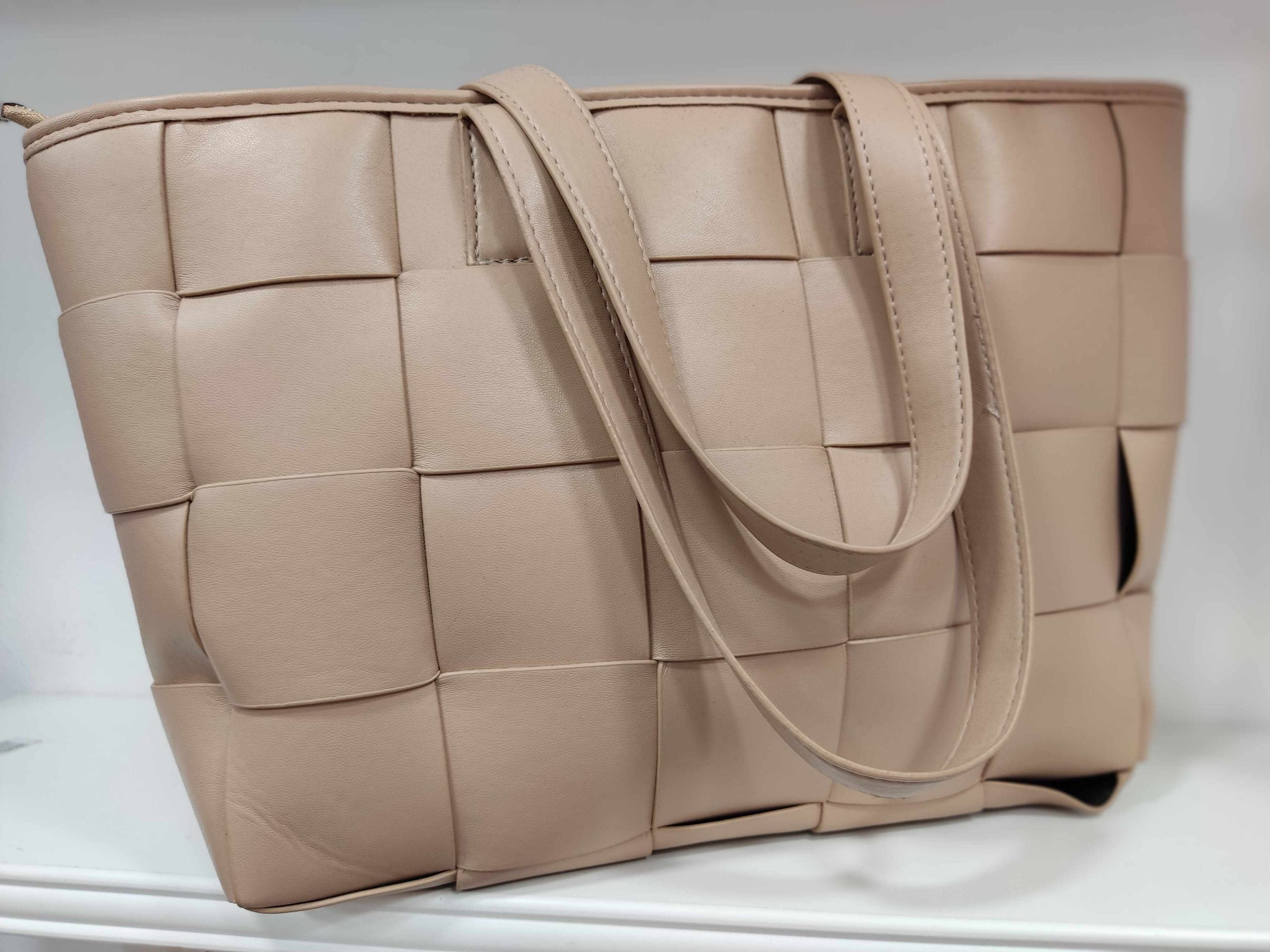Τσάντα ώμου με ανάγλυφο σχέδιο και minimal ύφος.