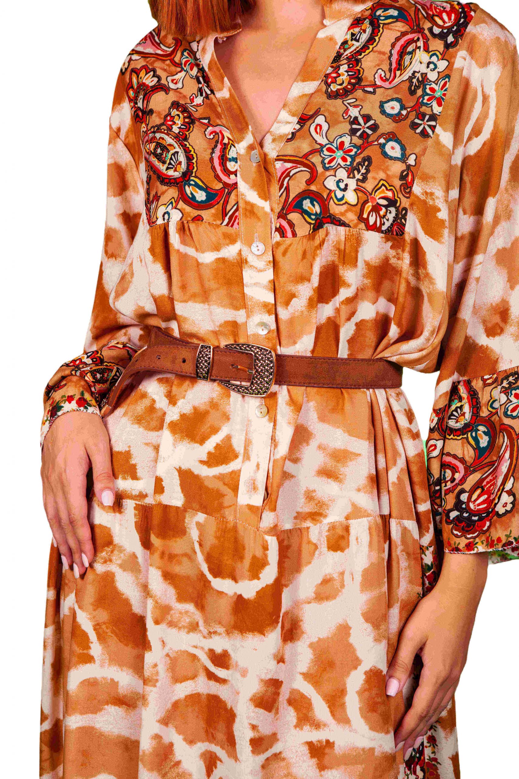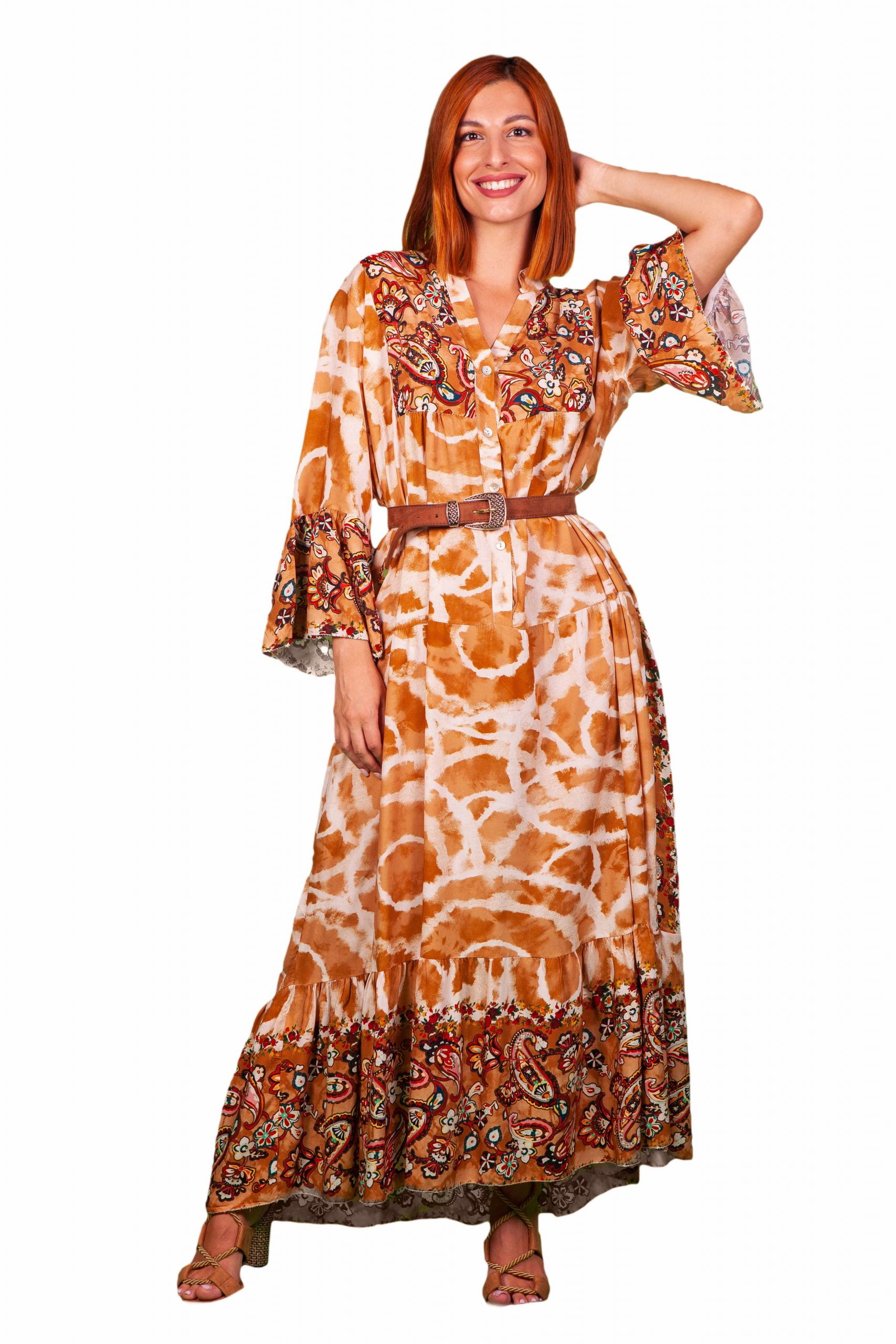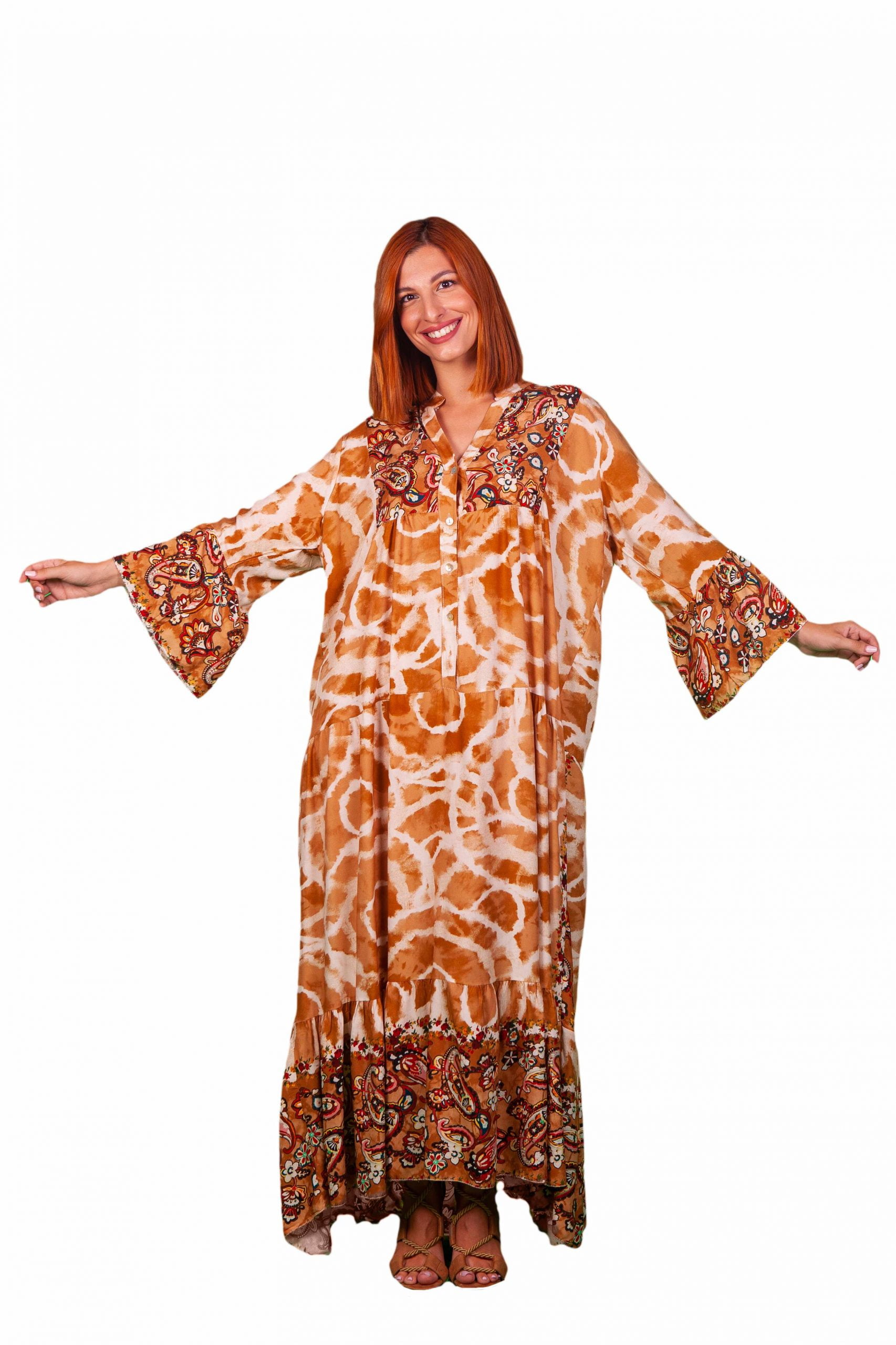 Φορεμα μάξι boho βισκοζ με καμπάνα μανίκια και άνετη γραμμή.