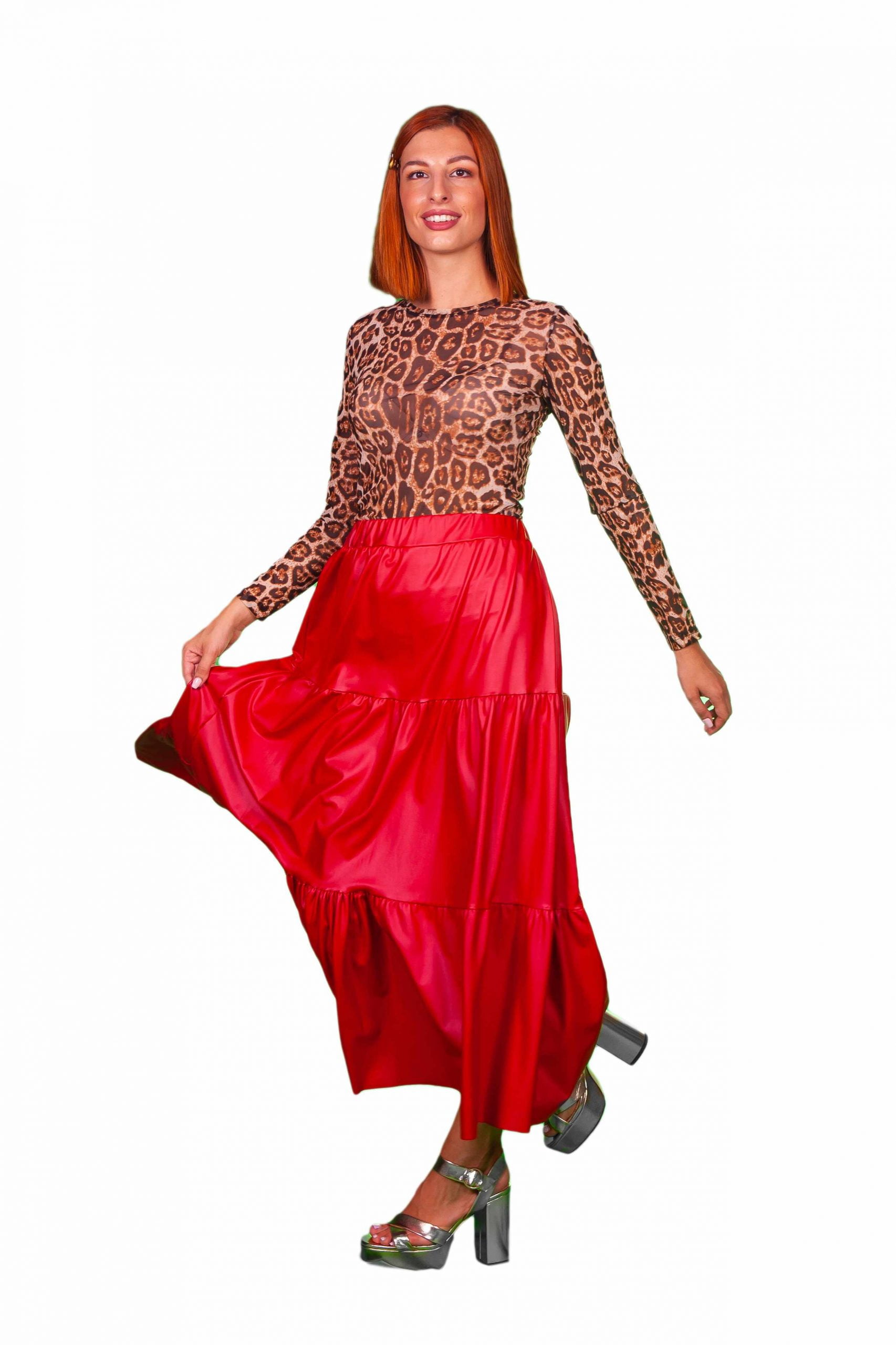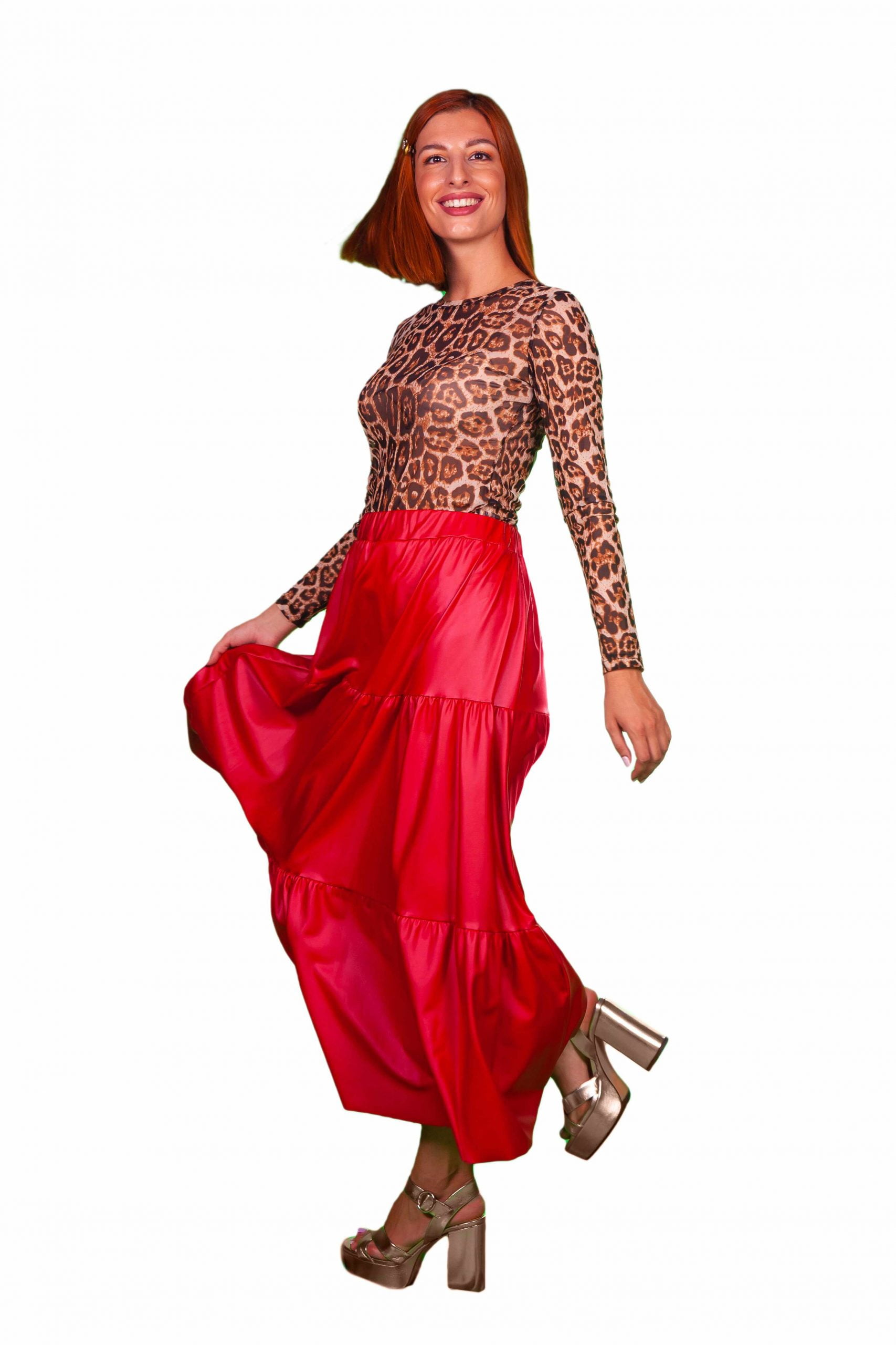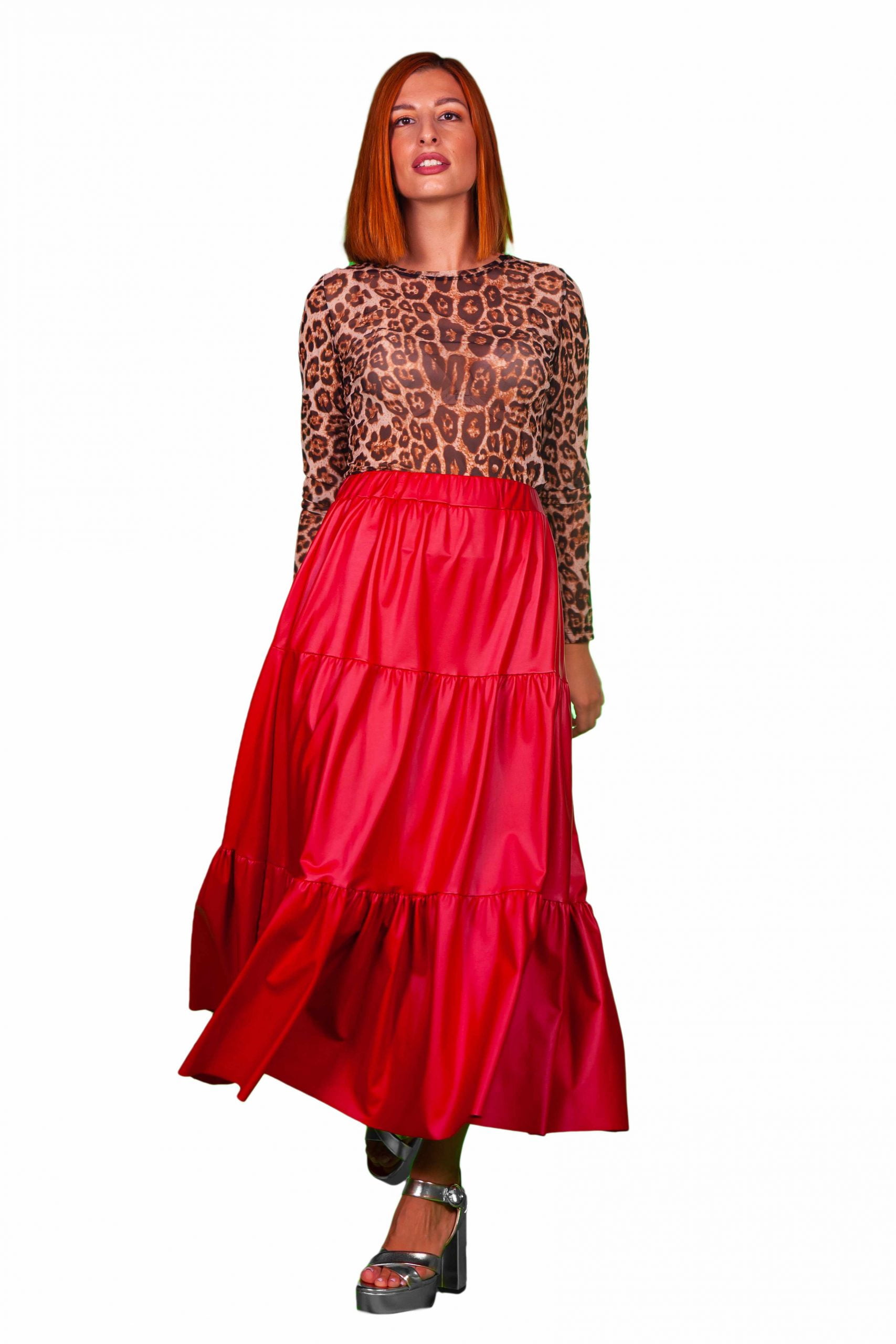 Φούστα, one size δερματίνη με βολάν και λάστιχο στη μέση.